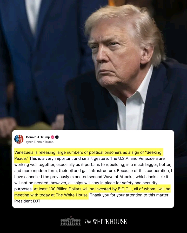 Venezuela has begun releasing a large number of political prisoners in what Caracas and Washington describe as a gesture aimed at “seeking peace,” a move that U.S. President Donald J. Trump says has prompted him to cancel a planned second wave of military attacks.