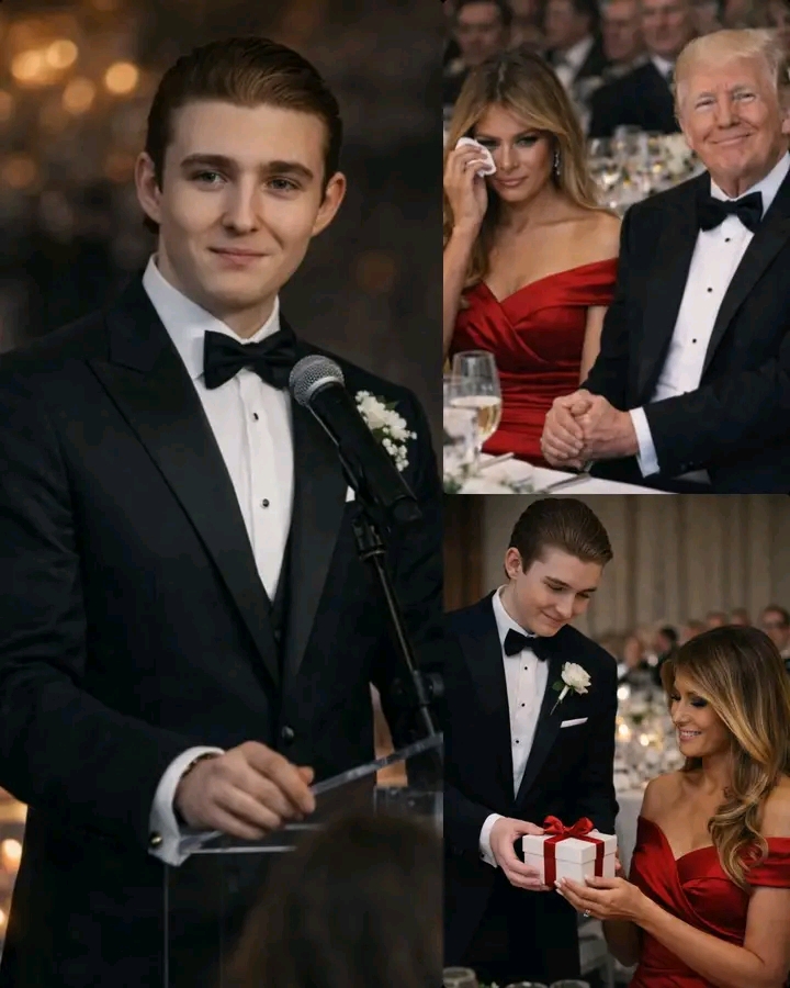 A private celebration at Mar-a-Lago reportedly took an emotional turn this week, after Barron Trump delivered what many guests described as the most heartfelt moment of the night — a simple message and a handmade gift that left Melania Trump visibly shaken and in tears.