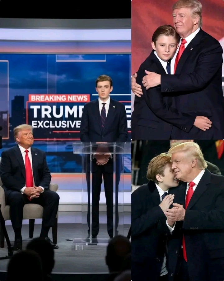In an emotional and rare public appearance, former President Donald Trump found himself silently watching his youngest son, Barron Trump, step up to the podium to address the nation. The setting was tense, the audience captivated, and the atmosphere charged with a mix of curiosity and concern.