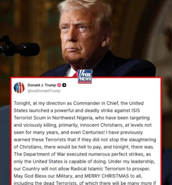 BreakingNEWS JUST IN: President Trump ordered a “powerful and deadly strike” against ISIS militants in northwest Nigeria following attacks on...